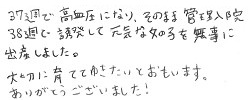 さっぽろARTクリニックn24で治療を行い、出産された方から届いた声の一部をご紹介させていただきます。我々は分娩取り扱い施設ではないので、妊娠された方は皆さんが分娩施設に転院されていきます。こうやって共に苦労して治療されてきた方の出産の便りが届くと、我々職員一同とても嬉しくなります。