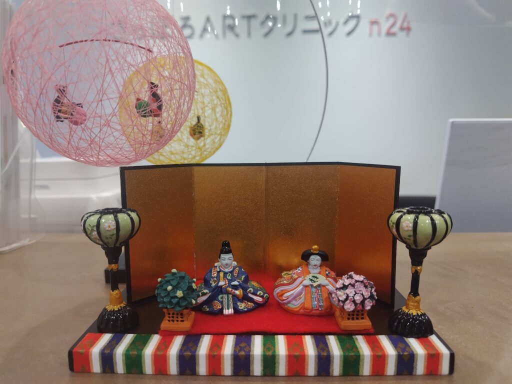女性の患者さんが多いので当院では毎年、ひな人形を飾っております。